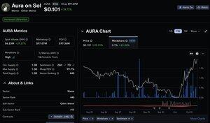AURA на рынке Sol растет по доле внимания (+317%) и рыночной капитализации (+18%), в то время как настроение становится бычьим.