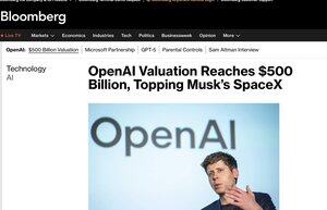 OpenAI завершила сделку, чтобы помочь сотрудникам продать акции компании по оценке в 500 миллиардов долларов, что позволило владельцу ChatGPT обойти SpaceX Илона Маска и стать крупнейшим стартапом в мире.