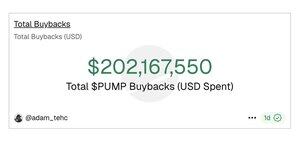 PUMP превысил $200M в выкупе токенов.
