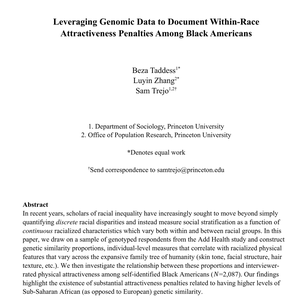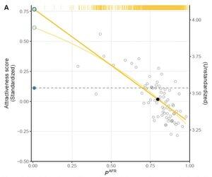Är afrikaner mindre attraktiva? En studie från Princeton University beslutade att undersöka detta med genetiska härkomstdata i Add Health (USA). Med deras ord: "Våra resultat belyser förekomsten av betydande attraktivitetsstraff kopplade till högre nivåer av subsahariska afrikanska ämnen."