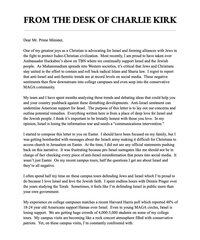 Följande är Charlie Kirks brev till Israels premiärminister Benjamin Netanyahu