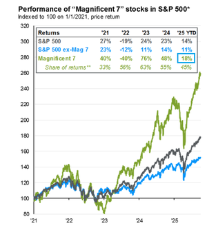 Mag 7:s avkastning på 18 % hittills i år skulle vara den tamaste under detta årtionde