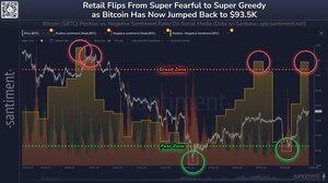 🤑😱 X, Reddit, Telegram, 4Chan, BitcoinTalk ve Farcaster gibi sosyal medya verilerine göre, açgözlülükten korkuya olan büyük dalgalanmalar Bitcoin'in fiyatını mükemmel şekilde anlattı. Aşağıdaki grafikte: