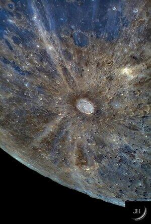 Кратер Тихо на Місяці. Удар настільки сильний, що можна побачити промені уламків, викинуті на всі боки. Фото: JHlunarphotography