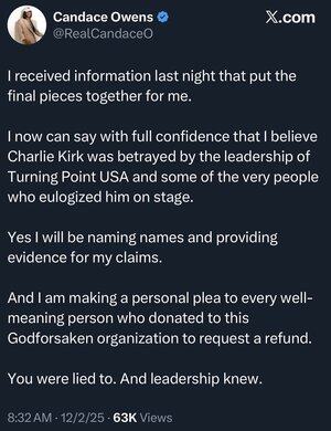Чарлі Кірк маргіналізував Кендіс Оуенс із TPUSA, тож тепер вона мститься, намагаючись зруйнувати організацію, яку він створив.