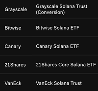 Кілька компаній, які в даний час подають заявки на SOL ETF: Grayscale, Bitwise, VanEck, 21Shares, Canary, Franklin, Fidelity і CoinShares.