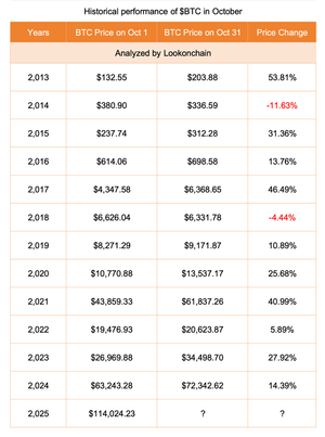 Історично склалося так, що ціни на $BTC зростали в жовтні протягом 10 з останніх 12 років.