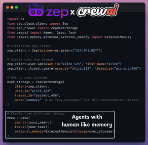 Якщо ви, як і я, є досвідченим користувачем @crewAIInc, варто ознайомитися з новою інтеграцією @zep_ai.