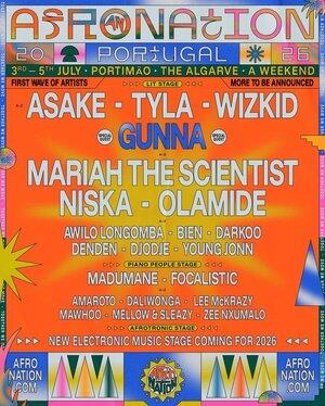 Оголошено першу хвилю артистів Afro Nation Portugal 2026, хедлайнерами якої стануть Asake, Tyla та WizKid.