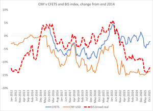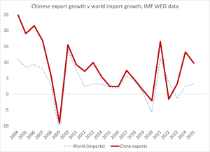 Третє — що знецінення реального валютного курсу Китаю (15-20% за останні кілька років) мало очікуваний вплив на китайський експорт (стандартні коефіцієнти передбачають зростання чистого експорту на 2,5–3 п.п. ... що здійснилося)