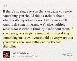 “Ý tưởng là ban đầu thu hút người dùng bằng một công cụ đơn lẻ và sau đó, theo thời gian, khiến họ tham gia vào một mạng lưới. Công cụ giúp đạt được khối lượng quan trọng ban đầu. Mạng lưới tạo ra giá trị lâu dài cho người dùng và khả năng phòng thủ cho công ty… bắt đầu một mạng lưới từ đầu là rất khó. Hãy nghĩ về các công cụ đơn lẻ như là mồi lửa.”