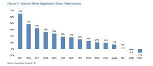 抱歉,@mikealfred。 BitFarms在九月份的比特币矿业股票表现中超过了$IREN,涨幅达到110%。 只有$CANG和$ARBK在@jpmorgan覆盖的矿工中价值下跌。