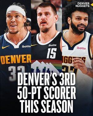 亚伦·戈登。 尼古拉·约基奇。 贾马尔·穆雷。 21场比赛,已经有三场50分的夜晚🤯 来自丹佛的高海拔得分表现。