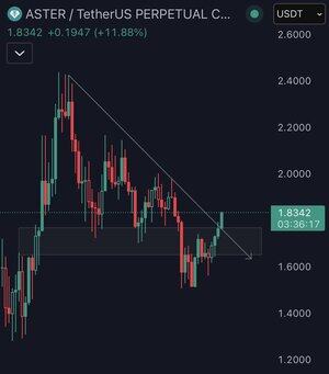 观察 $ASTER 看起来不错 - 在这个趋势线之上以4小时收盘是理想的