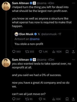 萨姆·阿尔特曼在这里绝对是对的。 埃隆·马斯克多年前就离开了OpenAI,试图将其吸收进特斯拉,现在每当OpenAI取得成功时,他就表现得像个被背叛的远见者。 当你抛弃了它,忽视了它的机会,然后在它超越你自己的项目时起诉它,你不能称之为“偷走一个非营利组织”。 这种不断的诉讼、阴谋和公关噱头并不是“保护人类”,而是试图减缓竞争。 进步不会等待受伤的自尊。