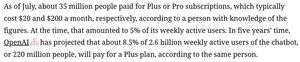 信息:OpenAI 预计到 2030 年,至少会有 2.2 亿人付费成为 ChatGPT 订阅用户。