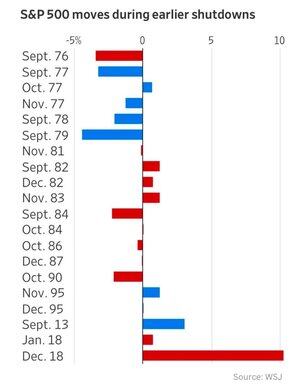 在2018年最後一次政府關閉期間,標準普爾500指數上漲了10%。