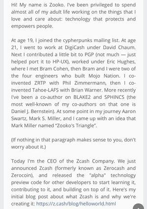 Zooko 的密碼朋克資歷僅次於 Hal Finney 和 David Chaum。 他與所有大牌合作,參與了所有重要的項目! (並在 2009 年 1 月撰寫了第一篇關於 Bitcoin 的博客文章,接下來的 7 年裡思考如何改善其隱私)