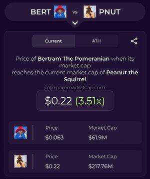 $BERT 只需 3.5 倍就能超越 PNUT!!!! 🚀 而且這會比你想像的更快發生。 很多人可能認為現在進入已經太晚了, 但當你意識到主要目標是數十億的市值時,你就會明白 6300 萬只是個開始。