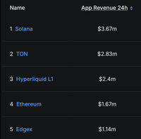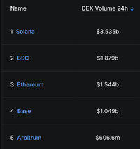 🚨突發消息:SOLANA 在 24 小時去中心化交易所交易量和應用收入中繼續領先所有鏈!!!🚨