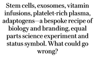 你的血液管家,血液檢測熱潮,以及相關的、未經證實的、潛在不安全的混合物 「像 BPC-157 這樣的肽被像喝濃縮咖啡一樣隨意注射,而 NAD 則用年輕光彩的承諾填滿 IV 袋。」