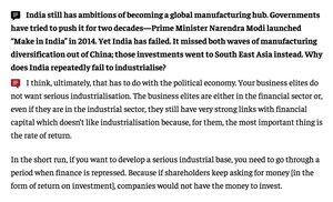如果你想了解為什麼印度未能實現工業化,請閱讀《Frontline》中對哈-俊·張的訪談。 張指出,印度的商業和金融精英不想要工業化——而且他們需要被壓制才能實現工業化。