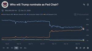 最新消息:Kevin Warsh 現在在 Polymarket 上成為下一任美聯儲主席的機率最高。 據報導,來自特朗普身邊高層人士對 Hassett 表示了反對。