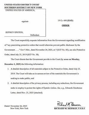 愛潑斯坦案卷:今天下午,南區紐約地區法官恩根梅耶對司法部要求解封的第二項命令發出,不僅是轉錄本,還包括美國訴吉斯蘭·麥克斯韋的證據材料。他希望明天中午之前能提供更多的詳細信息,關於案卷的內容。內城新聞報導。