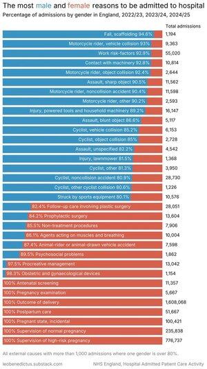 英國(NHS數據2022–25)住院的最男性化和女性化原因