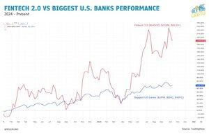 Fintech 2.0 正在徹底摧毀美國最大的銀行。 從 2024 年到現在: - “Fintech 2.0” 投資組合( $HOOD, $COIN, $GLXY )上漲了 +190% - 美國最大的銀行( $JPM, $BAC, $WFC )上漲了 68%