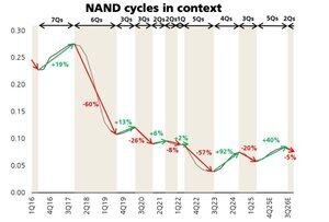 瑞士銀行(UBS)認為目前的NAND週期將在2026年第三季度結束。 記憶體股票通常在週期結束前約兩個季度就開始定價。 那麼,與NAND相關的股票會在2026年第一季度達到高峰嗎?